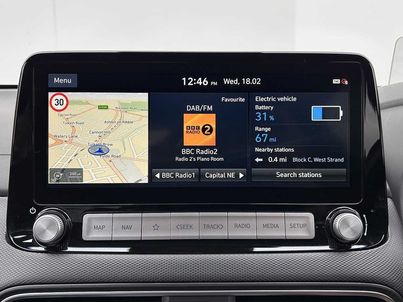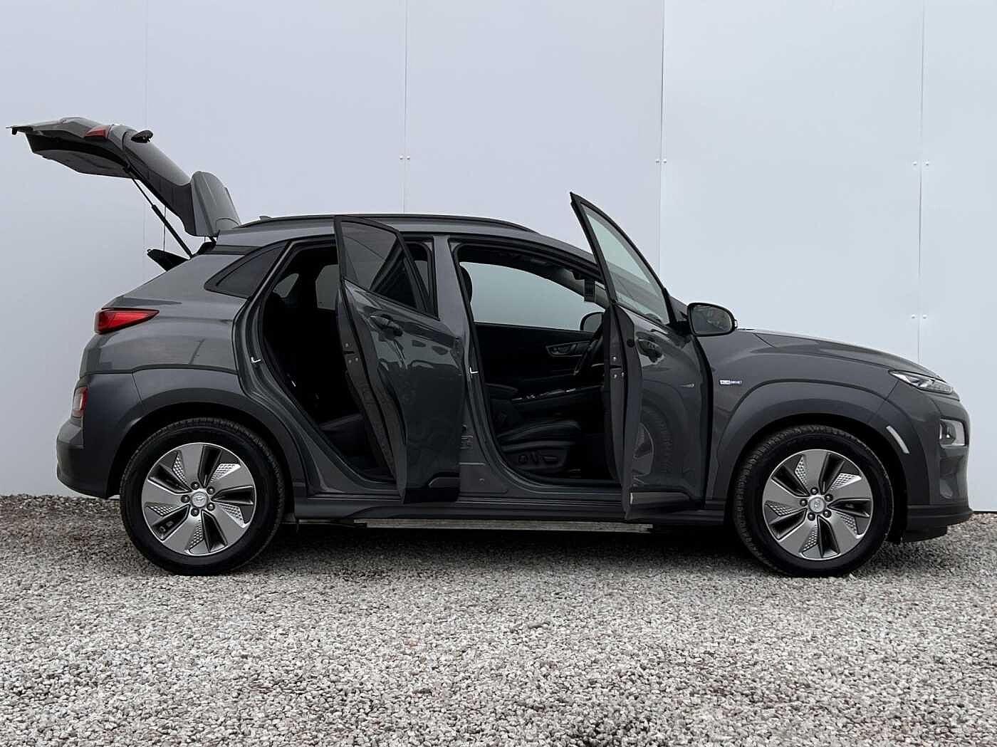This 2020 Hyundai KONA Premium SE electric vehicle stands out with its exceptionally low mileage of just 10137 miles, making it a superb choice for those seeking a nearly new driving experience. As a Premium SE model, this KONA boasts a substantial 68 kWh battery, offering a maximum range of 279 miles when new. Convenience is key with features like automatic headlights that activate with the dusk sensor, a wireless phone charging pad, and smart keyless entry with an engine start-stop button. Stay connected and entertained with Android Auto integration, and ensure passenger comfort with heated outer rear seats.The electric powertrain of this Hyundai KONA provides an efficient and quiet drive, with a full home charging time of approximately 9 hours and 35 minutes using a 7kW charger, perfect for overnight top ups. For longer journeys, rapid charging is also an option, reaching 80% capacity from empty in as little as 53 minutes at a public charging station. These charging capabilities, combined with the impressive range and the vehicle's low mileage, highlight how this particular KONA Premium SE offers excellent value and practicality compared to other electric vehicles on the market.